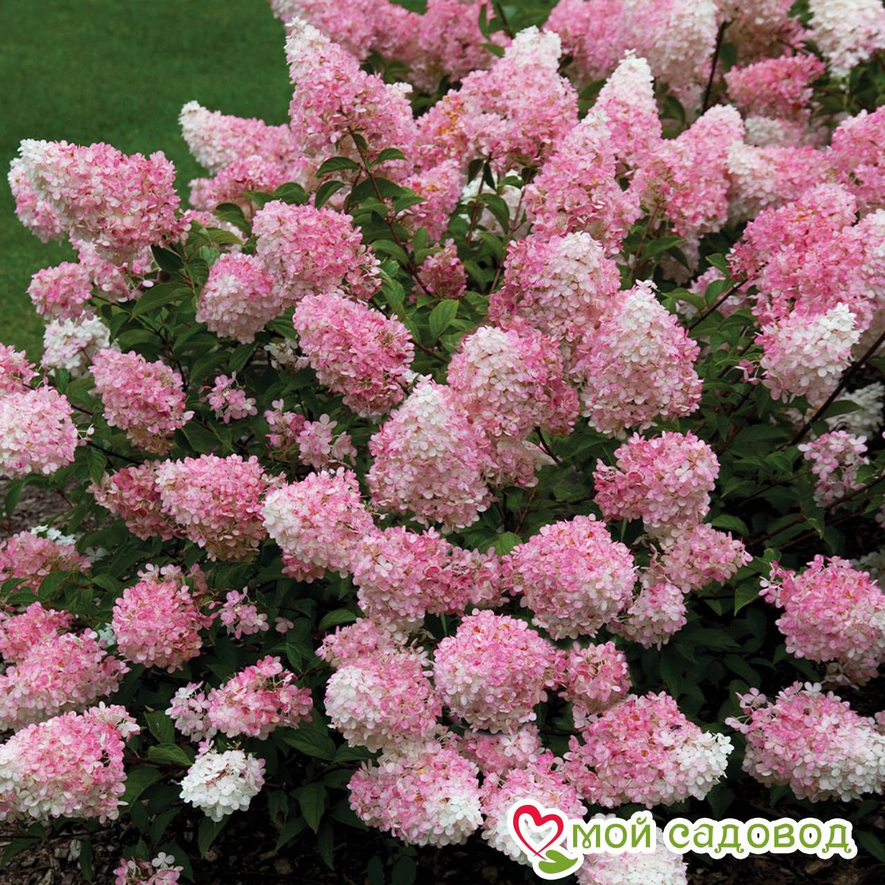 Стремительно и мгновенно завоевал сердца садоводов-любителей и ландшафтных дизайнеров. Это один из немногих сортов, который не нуждается в рекламе. Довольно высокорослый сорт, достигает 2 и более метров в высоту, с прямостоячими, жесткими побегами. Характерной особенностью этого сорта являются побеги интенсивно окрашенные в красный цвет. Листья темно-зеленые, сидят на черешках ярко-красного цвета, что придает особую декоративность. Обладает огромными, плотными соцветиями широкопирамидальной формы, с нижними боковыми выступами. На хорошем агрофоне высота конуса иногда достигает 40-50 см. Цветы расположены по всему объему куста очень густым каскадом, сначала молочно-белые, затем нежнейшего розового оттенка, к концу цветения становятся насыщенно красными, почти вишневыми. Чувствителен к обрезке: величина соцветий сильно зависит от длины оставленных побегов. В нашем интернет-магазине вы сможете купить Гортензия Так же возможно вас заинтересуют Дуболистная Гортензия Блек Порш дуболистная ЗКС и Гортензия Дуболистная Бургунди ЗКС